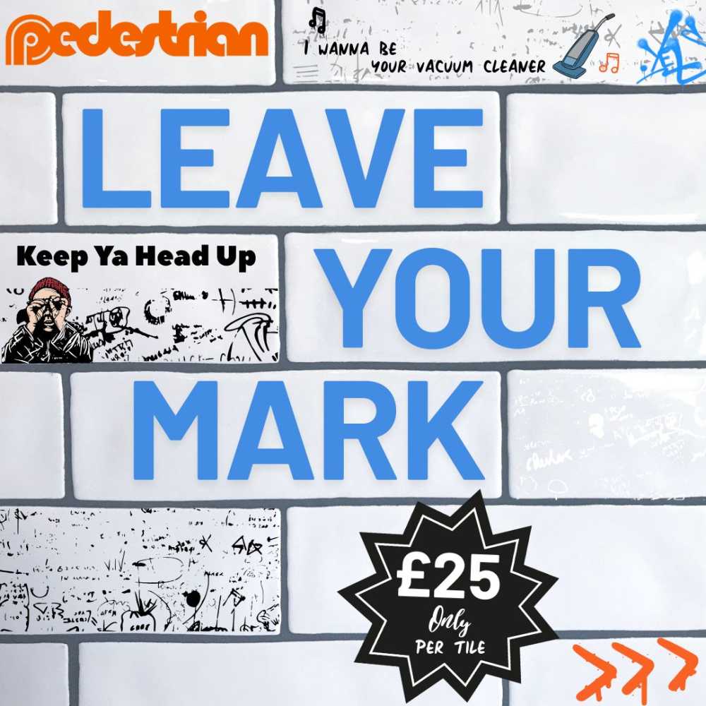 Pick a song or a short lyric (max 50 letters!) to be produced and showcased on the Lyric Wall in our legendary accessible toilet. Every contribution fuels Our Big Build – a vital, creative new space for young people.